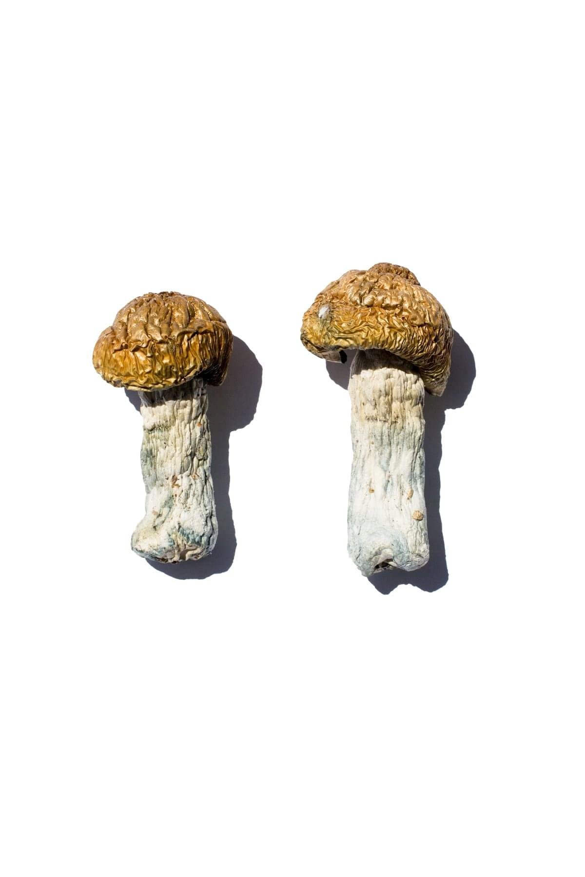 Hero shrooms are characterized by thick light-coloured stems and larger golden caps compared to the original Penis Envy’s. Some caps tend to open up and some remain closed.