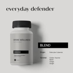 Spore Wellness Immuneis a blend of Golden Teacher (psilocybe cubensis), Reishi (ganoderma lucidum), Chaga (inonotus obliquus), and Organic Ginger. Recommend Use: Promotes & supports immune system health.